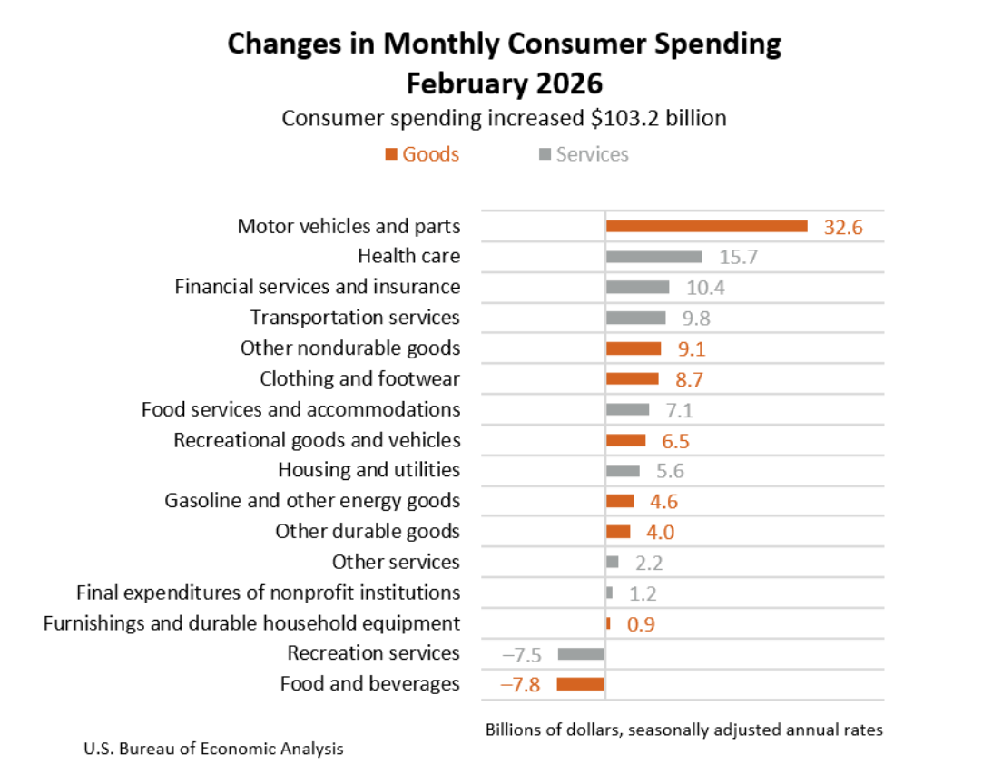 On an annual basis, core PCE increased 3.0% YoY, easing slightly from 3.1% in January but still well above the Fed’s 2% target, reinforcing the narrative that inflation progress has slowed.