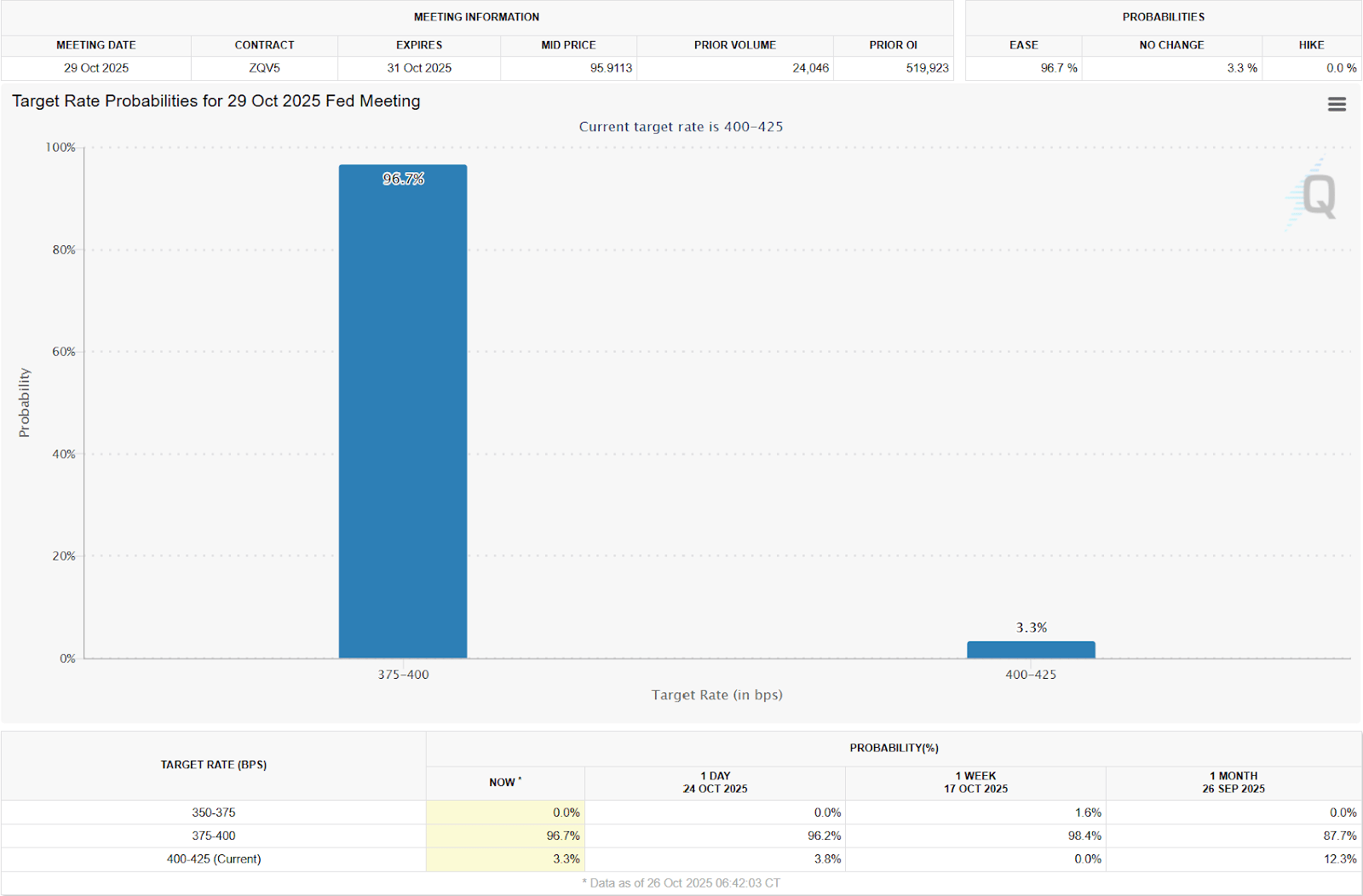 Friday (10/31): Chicago Business Barometer (PMI), Cleveland Fed President Hammack and Atlanta Fed President Bostic Speak, Consumer Spending, Core PCE Index, Core PCE Year Over Year, Dallas Fed President Lorie Logan Speaks, Employment Cost Index, PCE Index, PCE Year Over Year, Personal Income