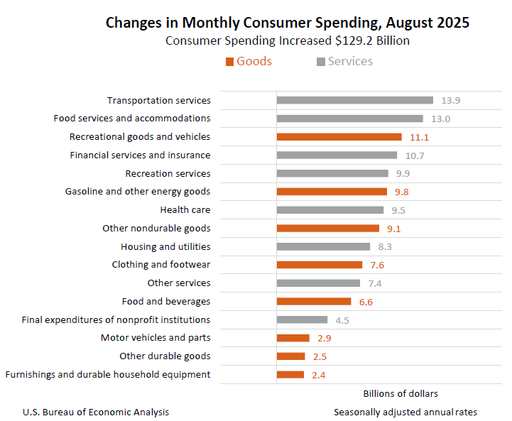 The Core Personal Consumption Expenditures (PCE) Price Index – the Federal Reserve’s preferred measure of underlying inflation – rose +0.2% MoM in August, matching July’s pace and expectations. On an annual basis, core PCE increased +2.9% YoY, unchanged from the prior month and consistent with the Fed’s projections.