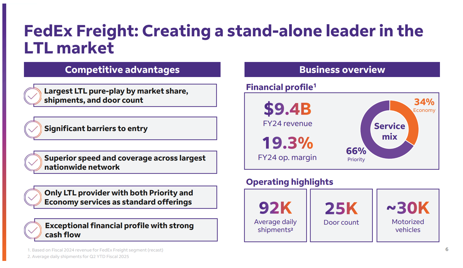 Truist’s Buy rating and $305 target highlight FedEx’s edge as aircraft fleet renewal wraps, slashing future CapEx needs. After Q2’s $4.05 adjusted EPS beat, focus is on DRIVE savings ($2.2B targeted for FY25) and Freight spin-off buzz. Other analysts see risks in soft B2B demand and potential margin compression.