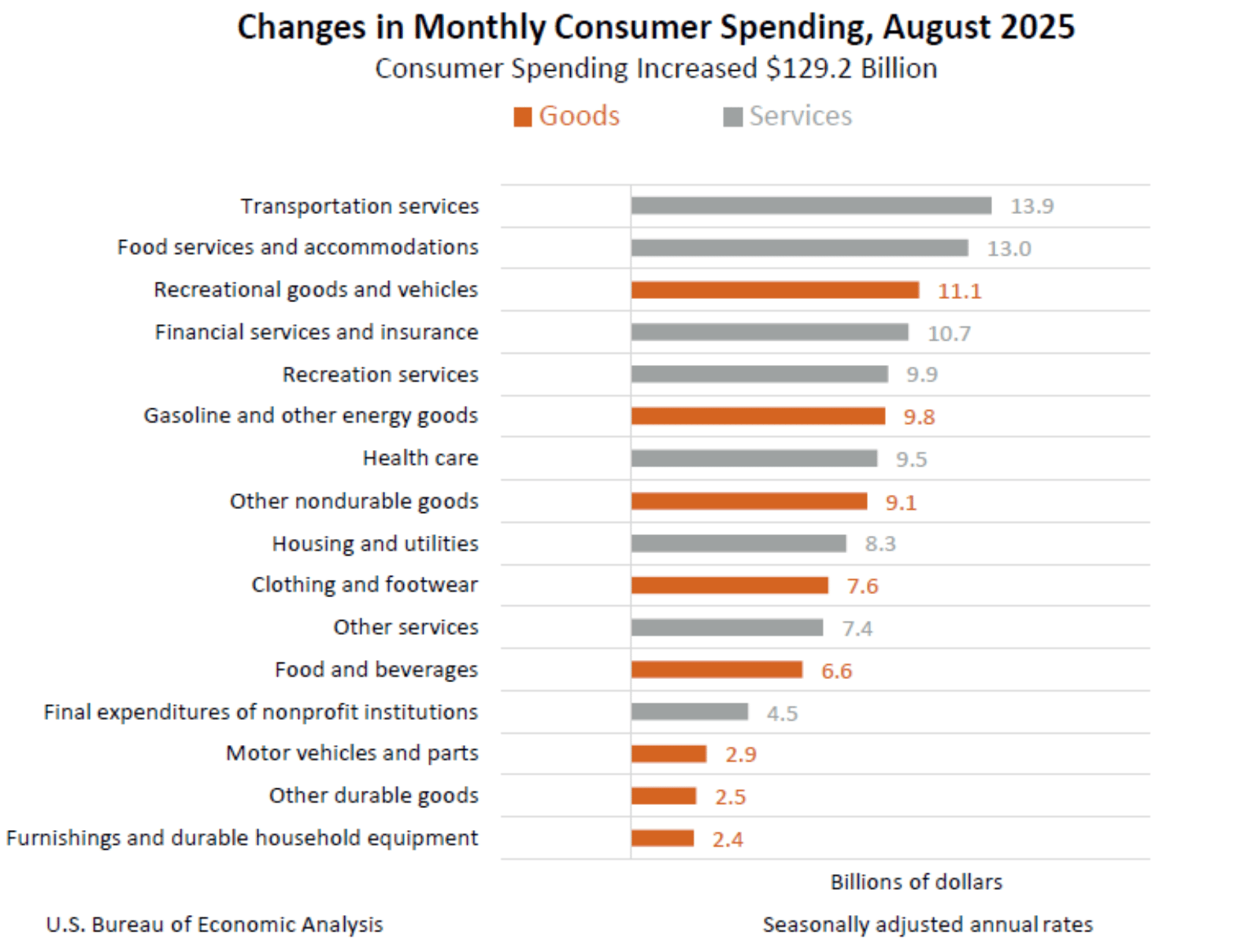 The Fed’s preferred inflation gauge — the Core Personal Consumption Expenditures (PCE) Price Index –rose 0.2% MoM in August, matching July’s pace and consensus estimates. On a yearly basis, core PCE increased 2.9% YoY, unchanged from prior readings and consistent with the Fed’s projection for a slow, uneven glide back toward 2%.