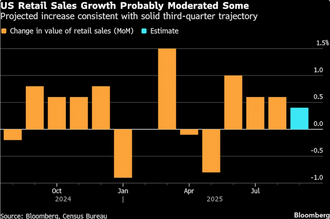 U.S. retail sales rose 0.6% MoM in August, matching July’s upwardly revised gain and handily beating expectations for a 0.2% increase. The report shows consumers are still spending despite higher prices and weaker sentiment, with strength concentrated in categories tied to online shopping, discretionary goods, and dining.