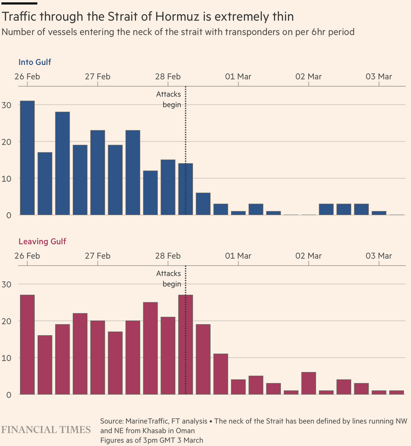 Roughly 20 million barrels of oil per day — about one-fifth of global seaborne crude supply — normally flows through the strait, but shipping disruptions have reportedly stranded ~16 million barrels per day behind the chokepoint. The supply shock has triggered the fastest oil rally since the early stages of the Russia-Ukraine war in 2022.
