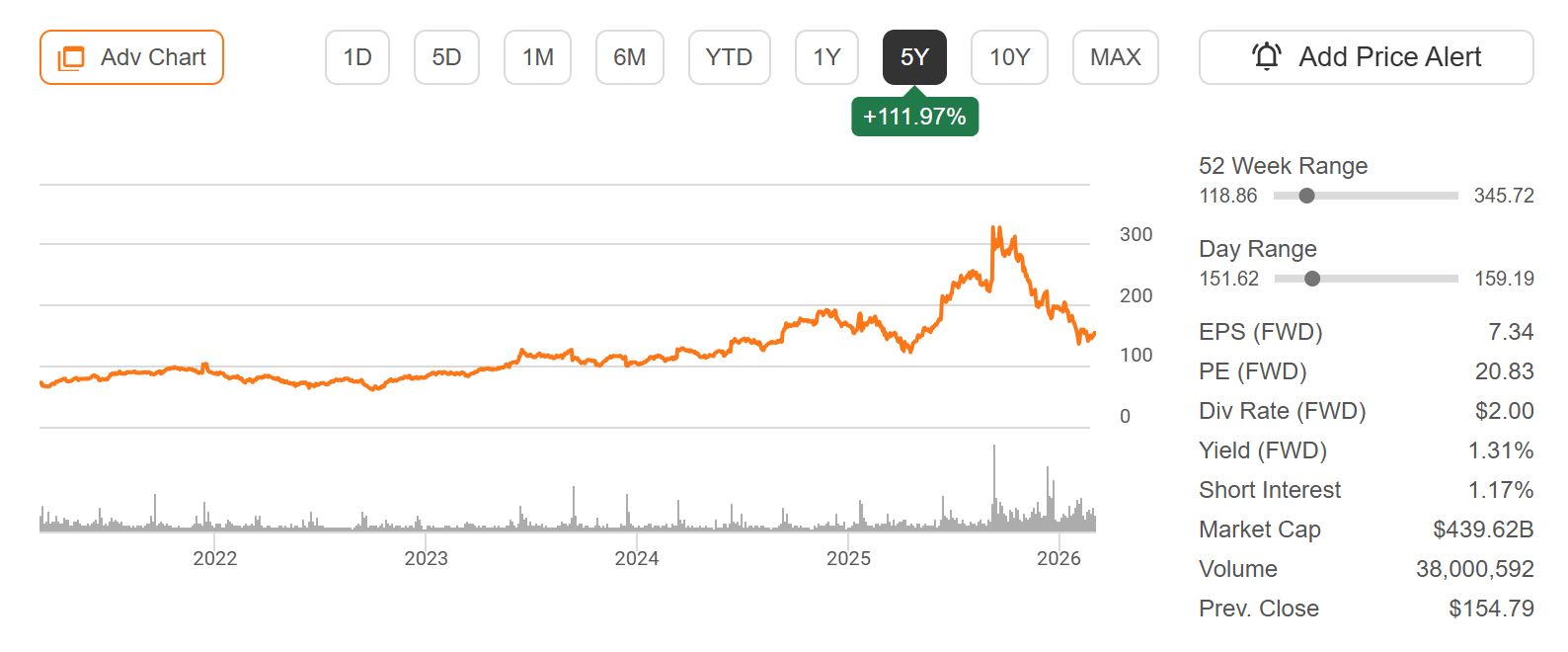 Oracle Corporation (ORCL) Stock Performance, 5-Year Chart, Seeking Alpha